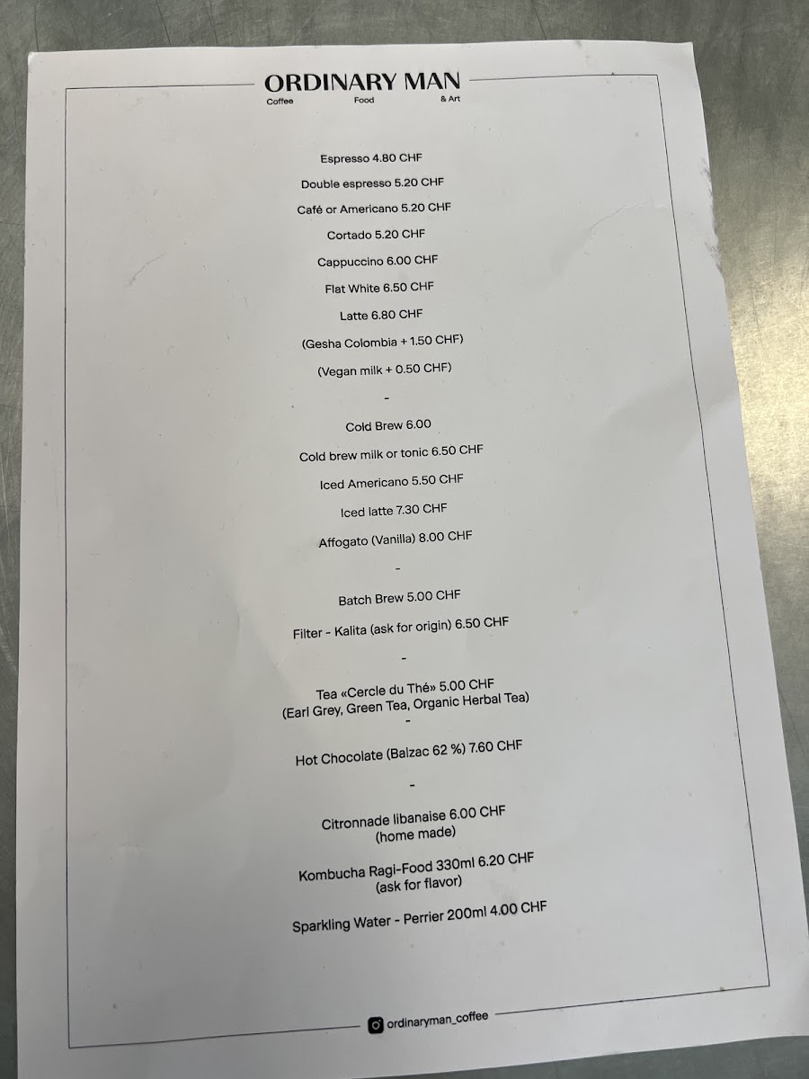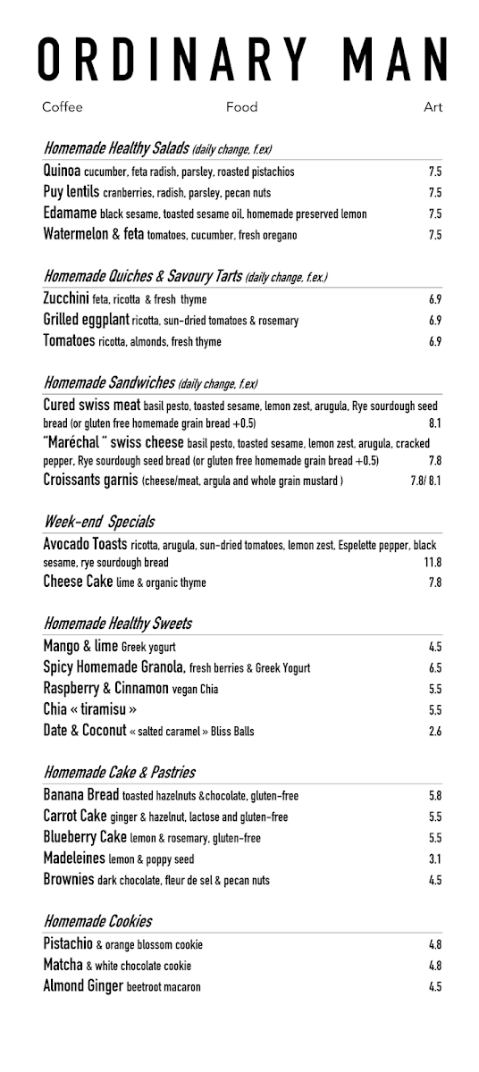 Welcome to Ordinary Man Coffee - Food - Art, a hidden gem located at Rue du Petit-Chene 28, Lausanne. This café masterfully blends exceptional coffee, delectable food, and a serene artistic ambiance, creating a unique experience for all who enter.